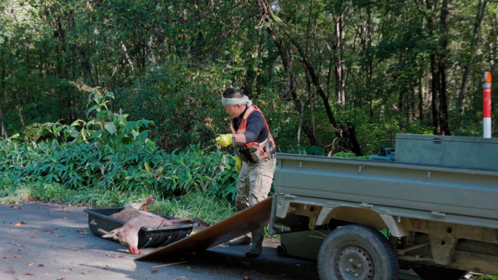 狩猟後の獲物を自社の食肉処理施設で解体し